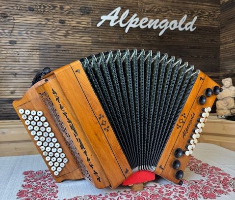 Balg: außen schwarz gerippt / Innen Dirndlstoff grün